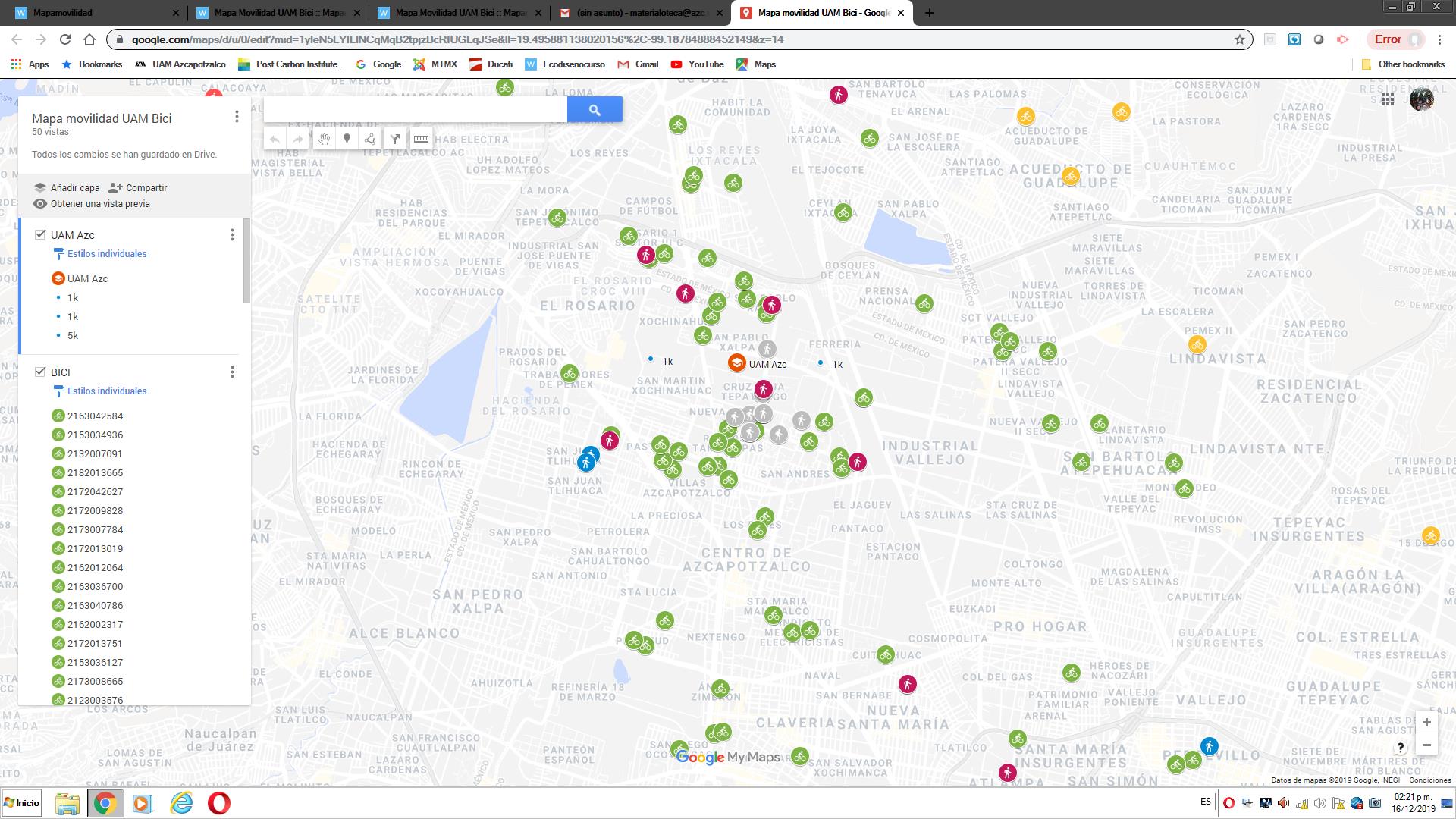 En este mapa solicitado por la Rectoría de la Universidad Autónoma Metropolitana cada ícono representa a los alumnos que se les prestó una bicicleta por medio del programa te presto una bici , la ubicación representa el domicilio del alumno y tiene un link vinculado para ver su ruta.
